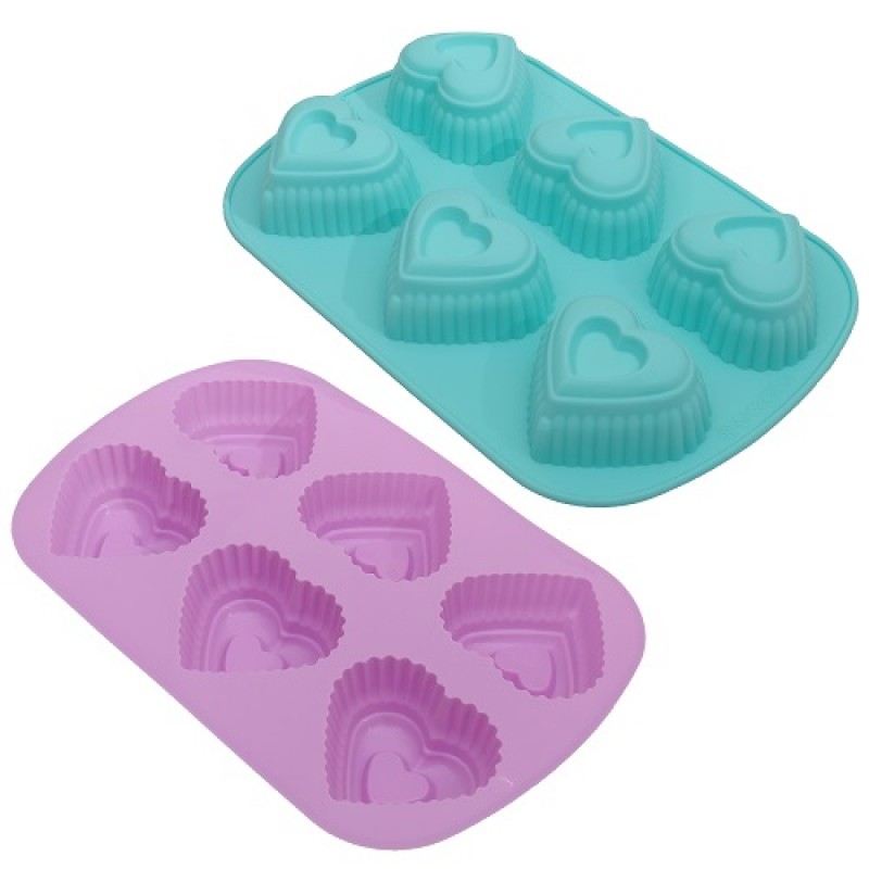 Форма силікон для кексів "Сердечко" 6 шт/л 25.5*17*4 см MH-3014 (120шт)