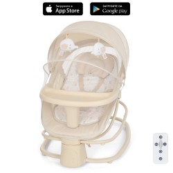 Заколисуючий центр-шезлонг 8081 2в1, APP, USB, таймер, москіт.сітка, столик, муз., беж.