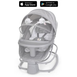 Заколисуючий центр-шезлонг 8016 пульт, APP, USB, таймер, москіт. сітка, іграшки, муз., світло-сір.
