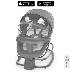 Заколисуючий центр-шезлонг 8018 пульт, APP, USB, таймер, москіт.сітка, іграшки, муз., сірий