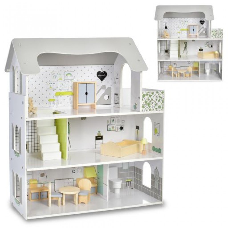 Деревянная игрушка Домик MD 1669 (1шт) 3этажа, 60-27-в71см, мебель, в кор-ке, 64,5-14-29,5