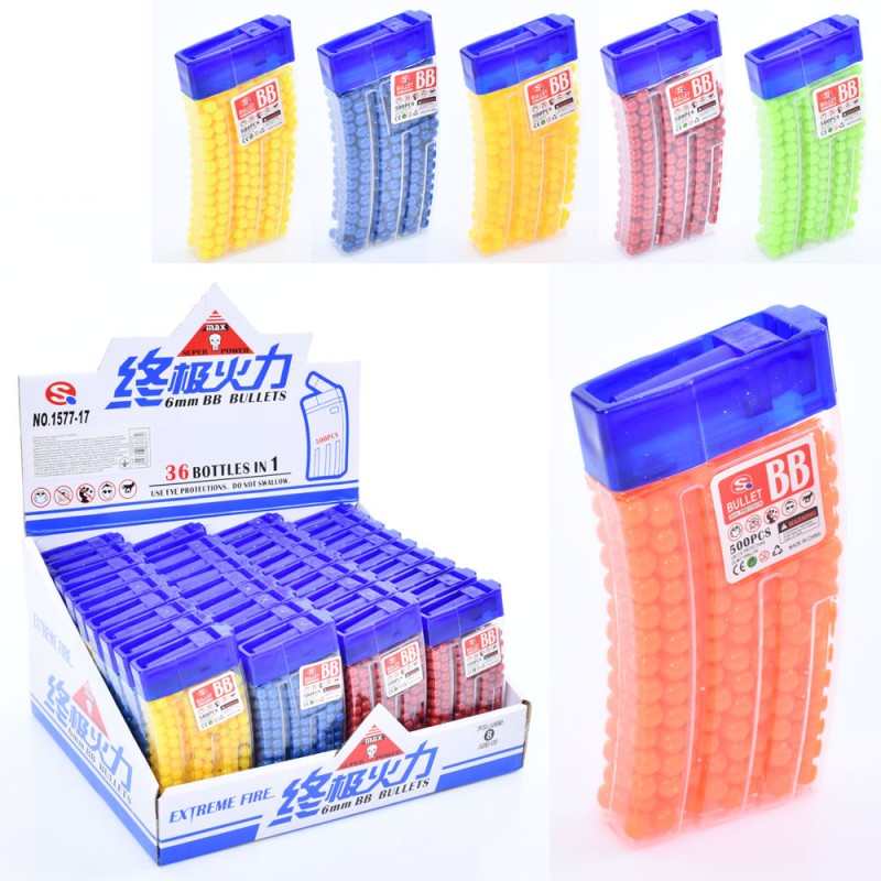 Кулі TD2023133 (288шт) 6мм, пластик, колба 5,5-11-2см, 36шт(6кольорів) в дисплеї, 24-11,5-19см
