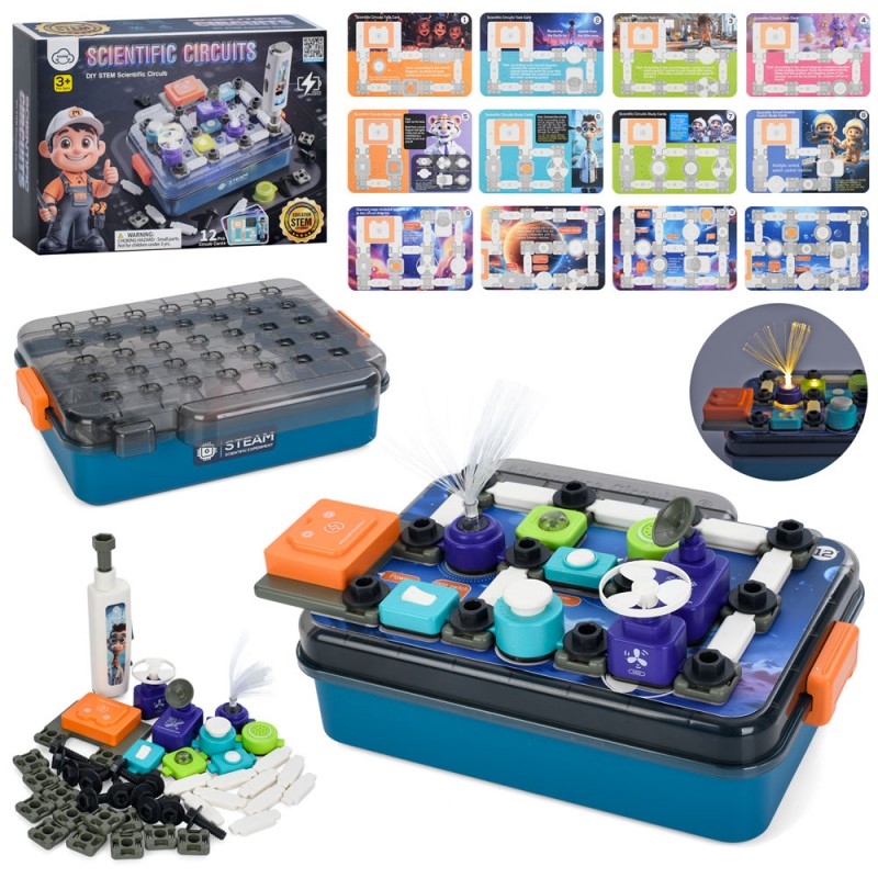 Конструктор 77-50B (12шт) електронний, ігрове поле, звук, світло, рухливі деталі, картки, викрутка, 58дет, на бат-ці, в кор-ці, 29,5-21,5-9см