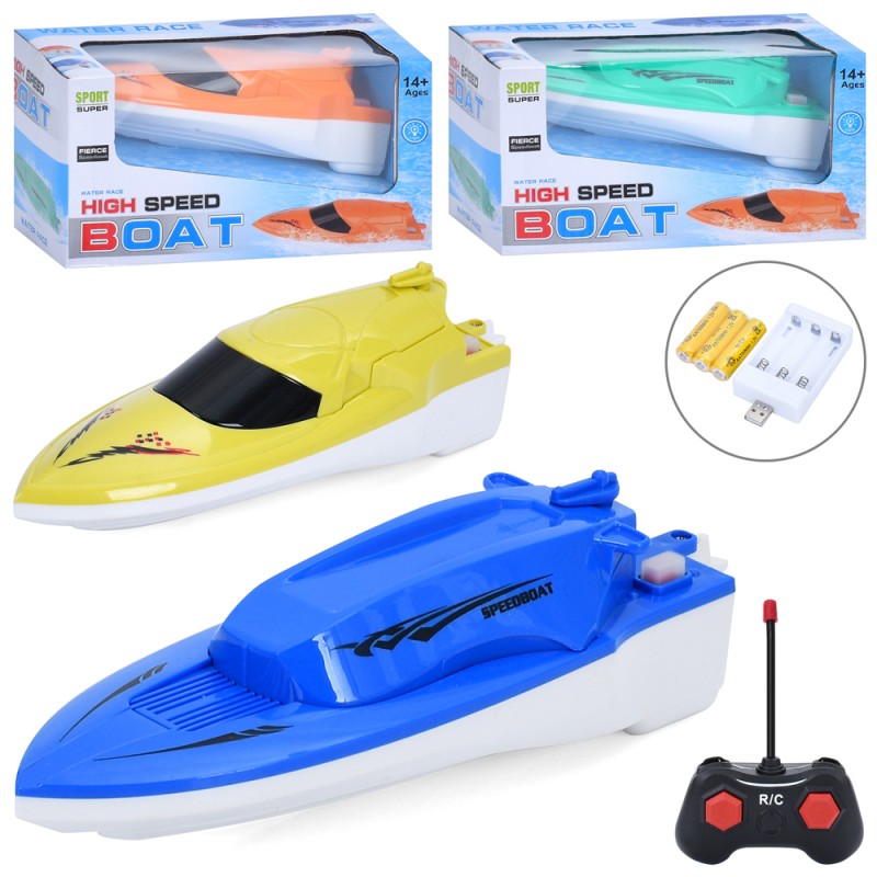 Катер BJ661-11A-12A-13A-14A (24шт) р/к, акум, 20,5см, світло, USBзарядне(блок), 2 види по 2 кольори, в кор-ці, 19,5-10,5-9,5см