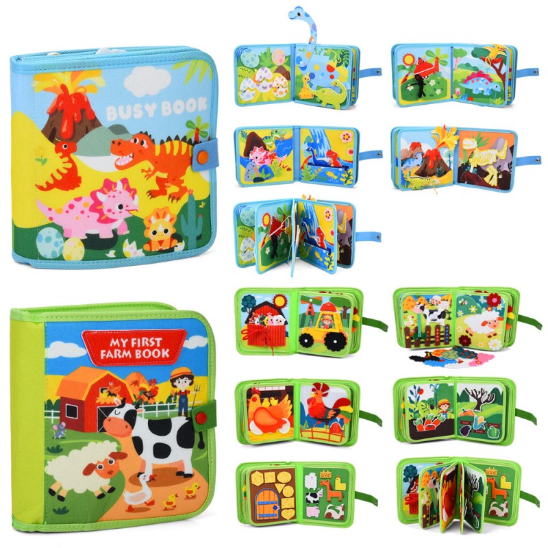 Гра CH1008-1009 (9шт) бізікнига/бізікнижка, 2 види (ферма/домашні тварини, динозаври), у пакеті, 25-29-6см