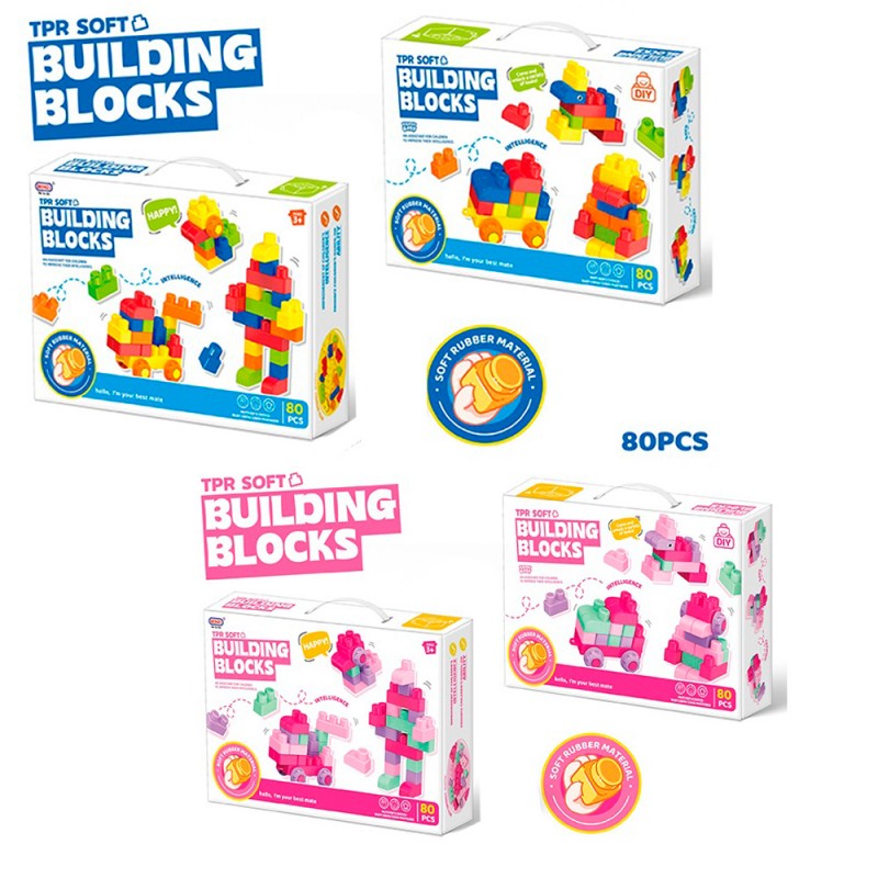Конструктор 66195-196-2 (18шт) м'який, 80дет, 2 види, в кор-ці, 35-24-7,5см