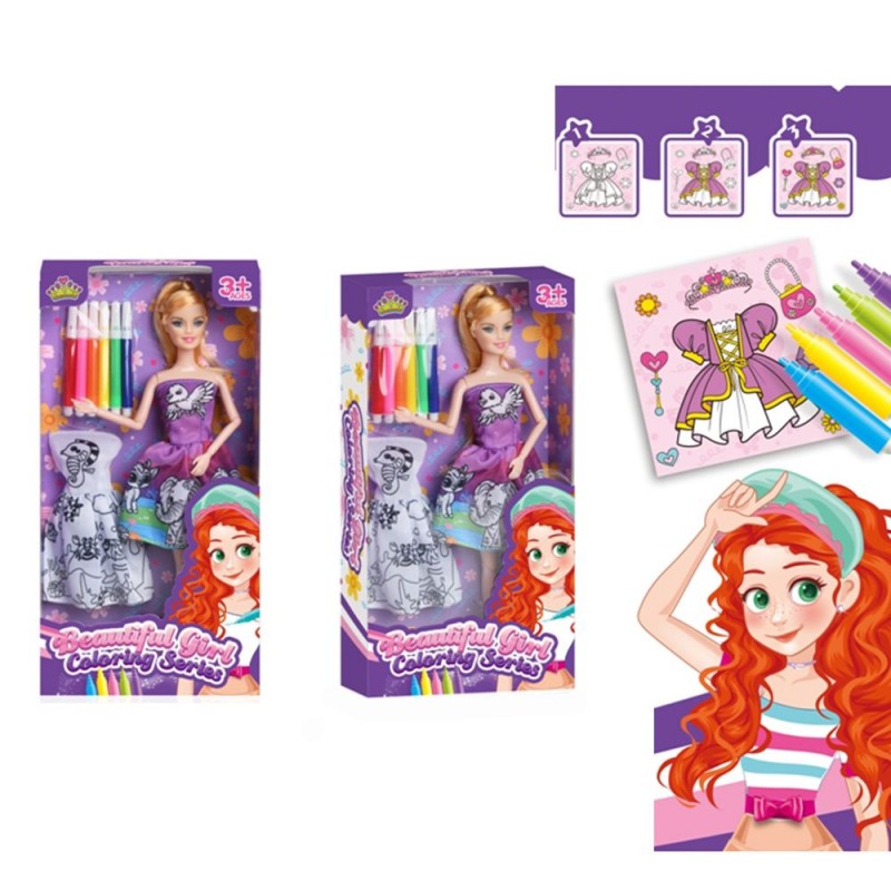 Лялька DSJ278-4 лялька з вбранням,шарнірна,плаття-розмальовка,фломаст.6шт, мікс видів.кор.16-31-5см