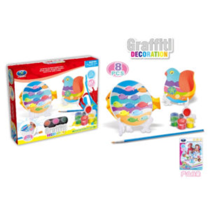 Набір для творчості 868-D26 (36шт) Розфарбуй рибку та пташку (глиняні), підставки, декор, фарби, пензлик, в кор-ці, 27-22,5-5,5см