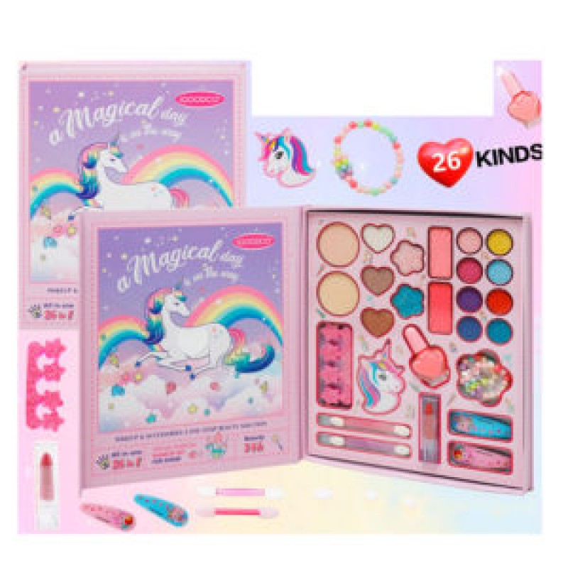 Косметика IG3270 (30шт) палетка, тіні, рум'яна, набір для манікюру, принт-єдиноріг, в кор-ці, 20-23,5-2,5см