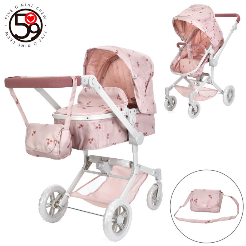 Коляска T742054 (4шт) для ляльки, трансформер, люлька 57-29см, регул.ручка EVA, сумка, корзина, метал, в кор-ці, 59-40-14см