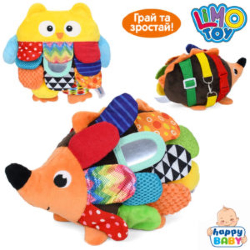 Гра HB 0114 AB сенсорна гра/тактильна гра,застібки,шуршить,дзеркало,пискавка, плюш,2 види(сова.їжак)