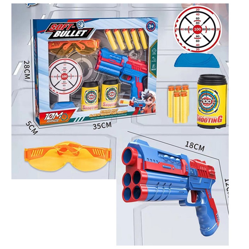 Набір з мішенню A88-69 пістолет 18см, м'які кулі-присоски 5шт, мішені, окуляри, кор.,