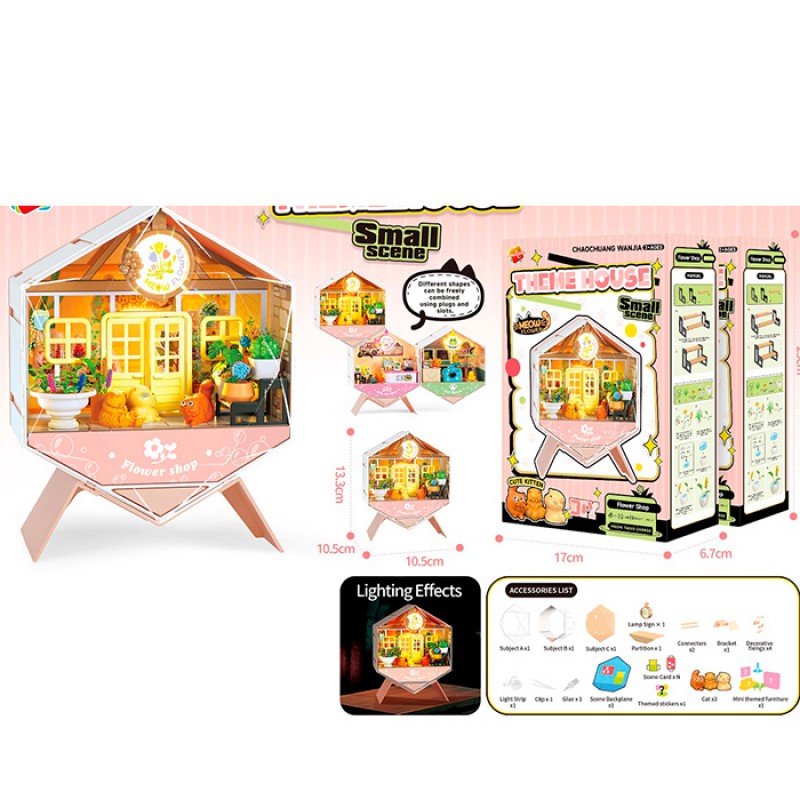 Набір для творчості K2903 міні будинок, квітковий магазин, 10,5-10,5-в13,3см, зроби сам,бат.,кор.