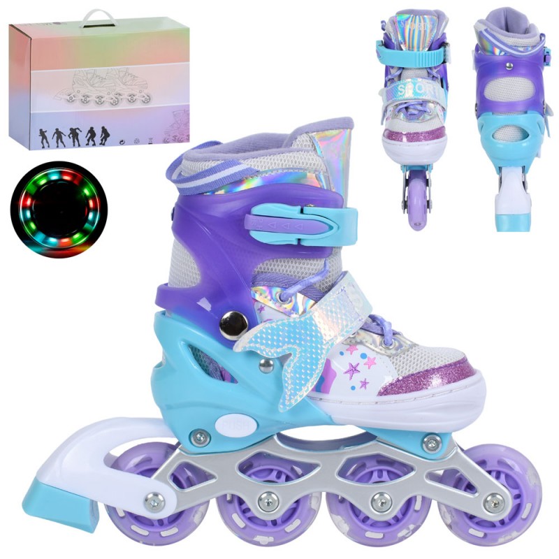 Ролики A4165-S-V (30-33) (1шт) розсувні, шнурівка+бакля, алюм.рама, колеса ПУ 64мм, світло, устілка 18,5см, фіолет, в кор-ці,40-30-12см