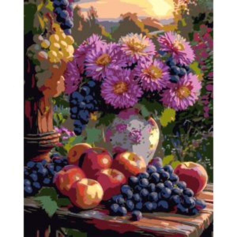 Картина за номерами Strateg Рожемі квіти з фруктами 40Х50 (VG021)