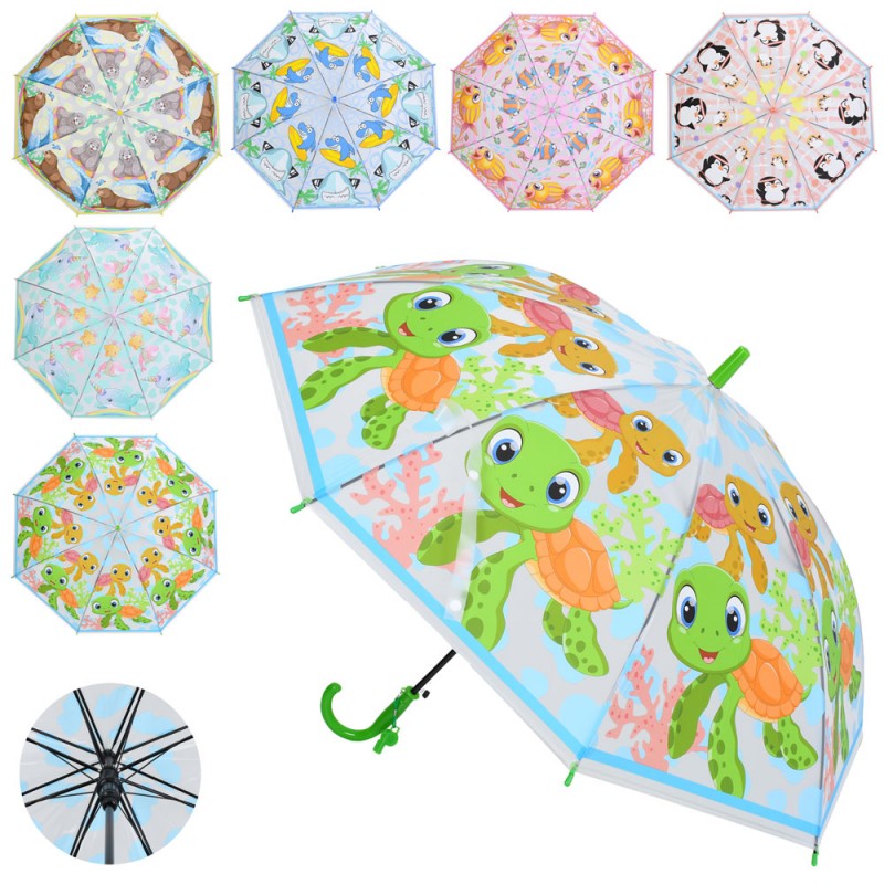 Парасолька дитяча MK 5791 довжина 64,5см, тростина 60см, діаметр 85см, спиця 48см, 6видів, кул.,