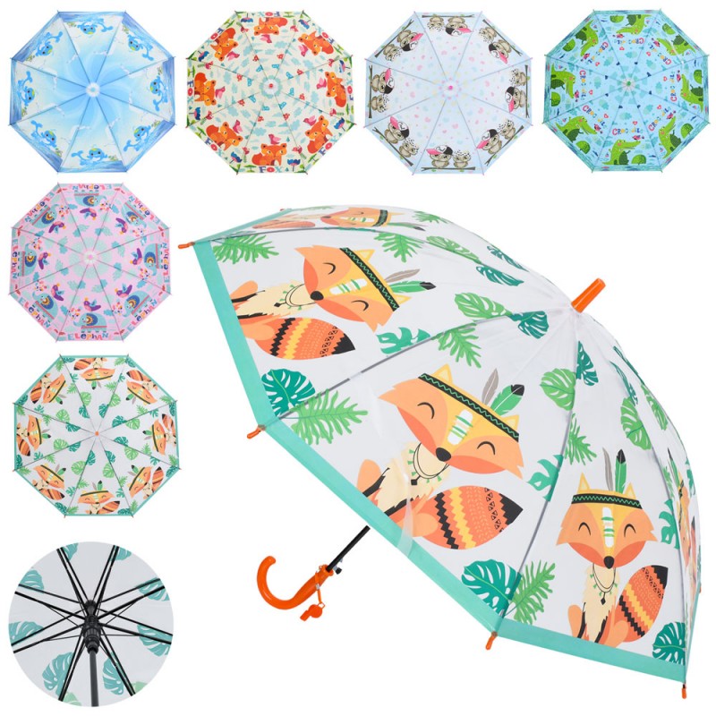 Парасолька дитяча MK 5792 довжина 65см, тростина 60,5см, діаметр 85см, спиця 48см,6видів, кул.,