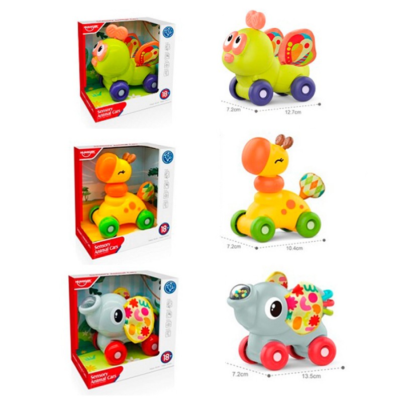 Гра HE8092-93 тварина на колесах, шуршить,2 види(слон, брязкальце,метелик,тріскачка),кор.15-14,5-9см