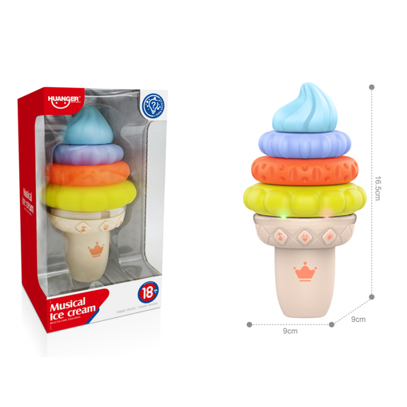 Гра HE0565 морозиво,16,5см, 2в1(пірамідка,4 деталі-пазли, текстурні, прорізувач), муз.,світло,бат.,
