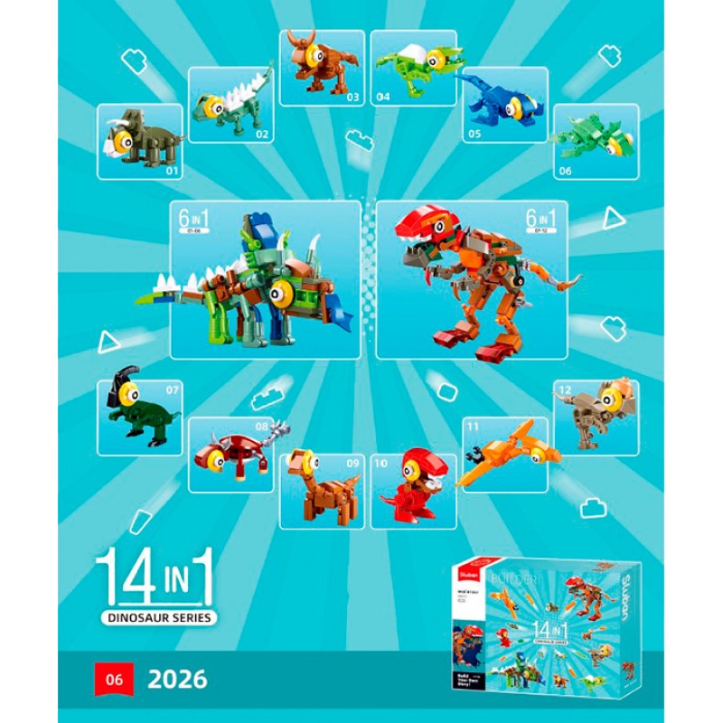 Конструктор SLUBAN M38-B1397 (16шт) динозаври, 14в1, 446дет, в кор-ці, 38-28,5-7см
