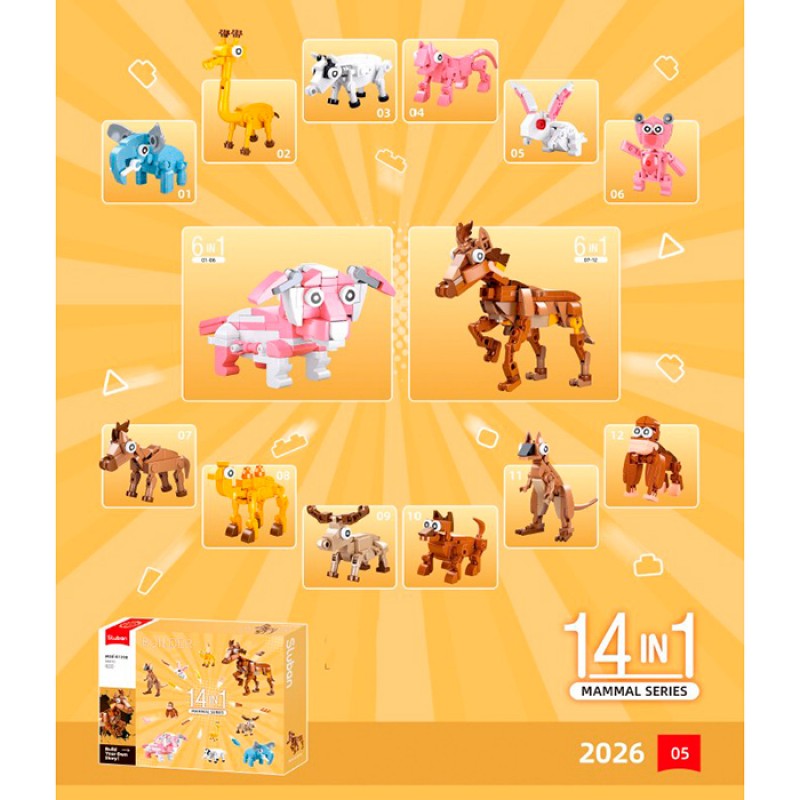 Конструктор SLUBAN M38-B1398 (16шт) тварини, 14в1, 503дет, в кор-ці, 38-28,5-7см