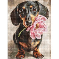 Набір з алмазною мозаїкою "Собака у півоніях" 40х50см