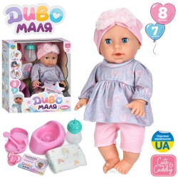 Пупс YL2430L-V-DM-UA п'є-пісяє, горщик, пляшечка, соска, підгузок, кор., 26,5-29,5-14,5 см.